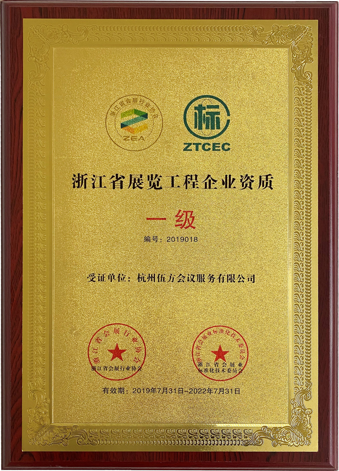 浙江省展覽工程企業(yè)資質(zhì)一級。